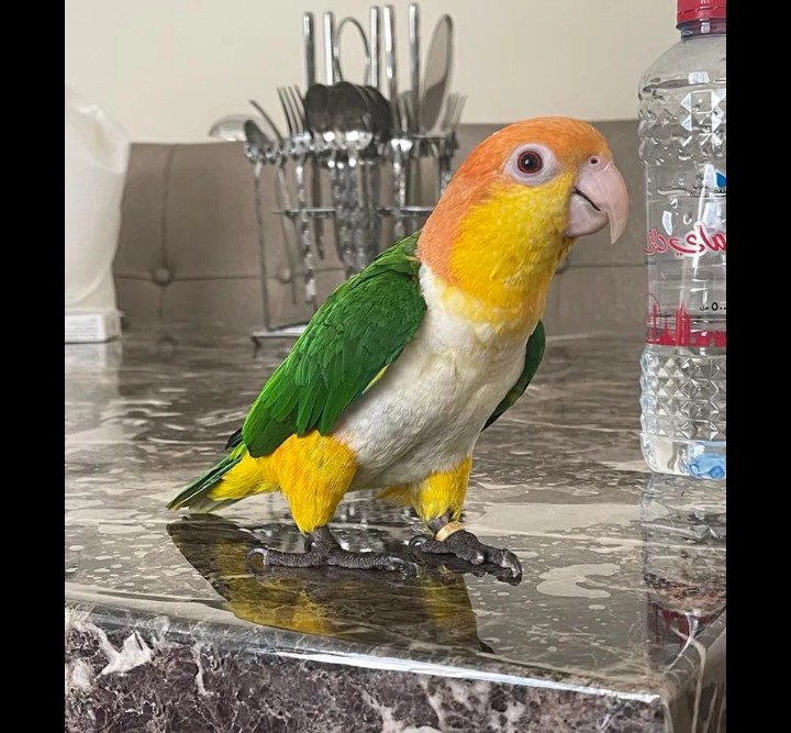 One and Half years Caique available fully Tamed very active and healthy including cage and accessories for more videos you may WhatsApp me
