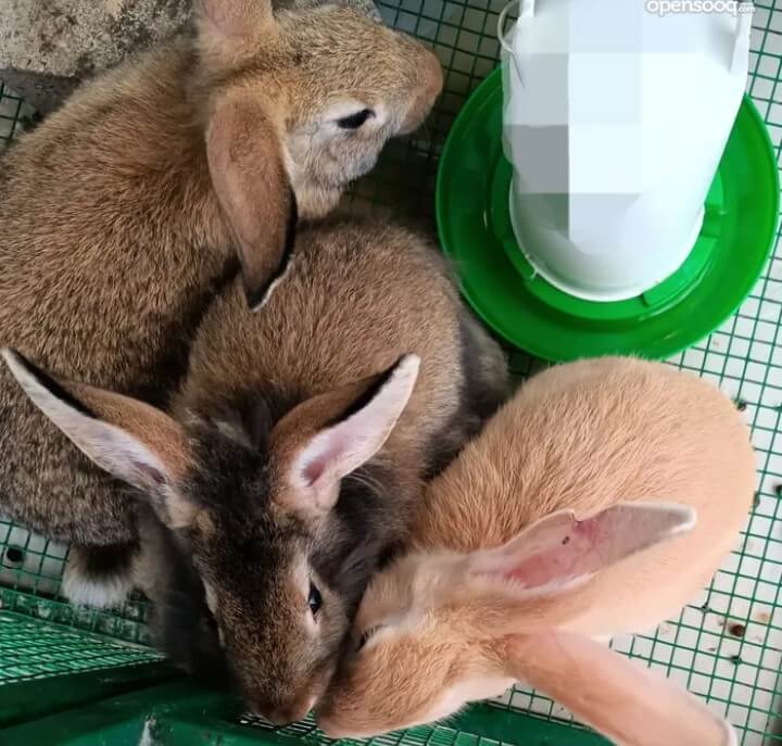 ثلاث أرانب ذكرين لون بني غامق وأنثى لون بني فاتح او رملي (كما هم في الصور) بصحة ممتازة العمر تقريبا 3 شهور مطلوب في الثلاثة 100 درهم
